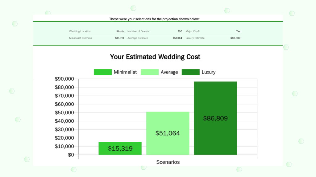 Fill in your own projections and explore how wedding costs vary by location and guest count – sign up for Tulle or sign in here!