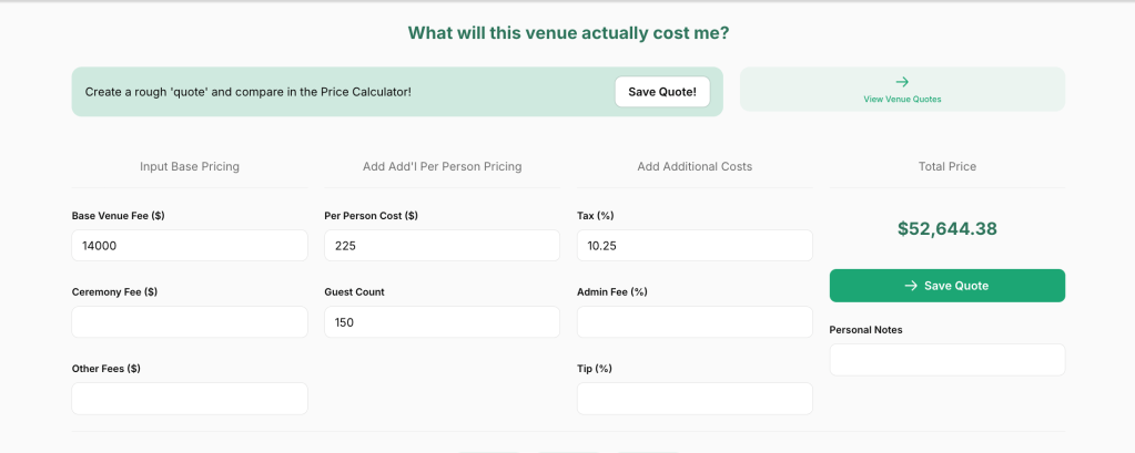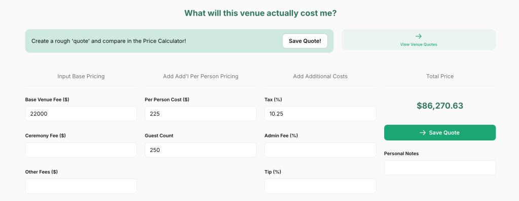 See the math on Tulle Together’s Venue Calculator Tool: