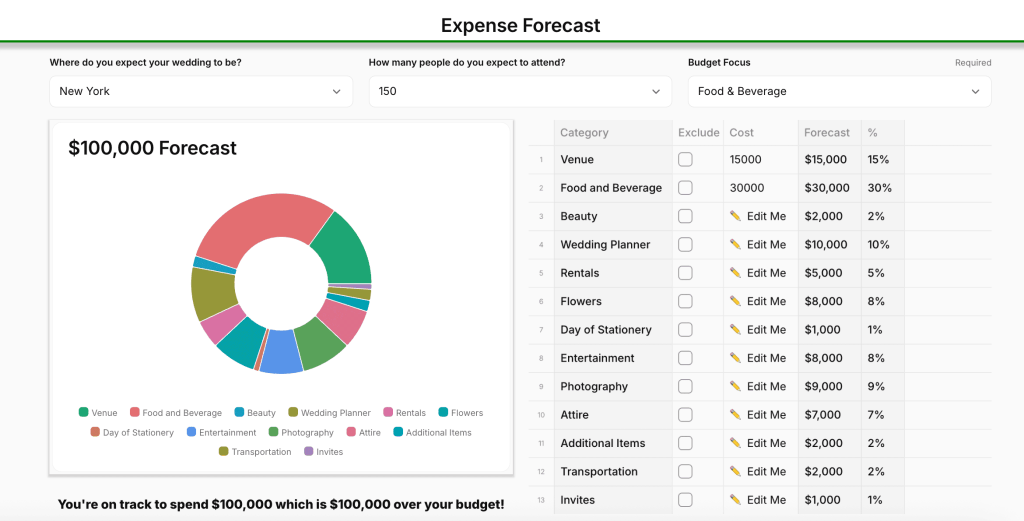 The Cost Forecast Tool is just one of Tulle Together’s budgeting resources. On the website, you’ll find a variety of budget tools designed to help couples plan out their total wedding costs before they book anything. Whether you’re estimating expenses, tracking your spending, or looking for real venue pricing, Tulle Together’s tools provide a transparent approach to wedding budgeting—so you can plan confidently and avoid unexpected surprises. Sign up here for a smarter way to plan your wedding!