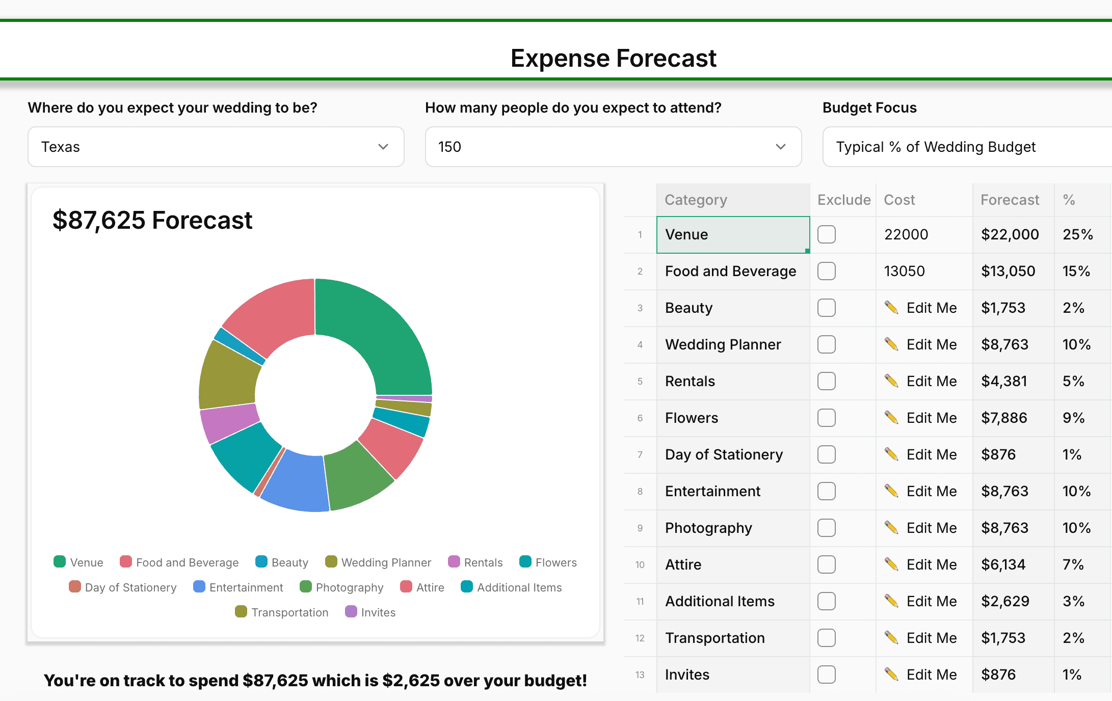 The Cost Forecast Tool is just one of Tulle Together’s budgeting resources. On the website, you’ll find a variety of budget tools designed to help couples plan out their total wedding costs before they book anything. Whether you’re estimating expenses, tracking your spending, or looking for real venue pricing, Tulle Together’s tools provide a transparent approach to wedding budgeting—so you can plan confidently and avoid unexpected surprises. Sign up here for a smarter way to plan your wedding!